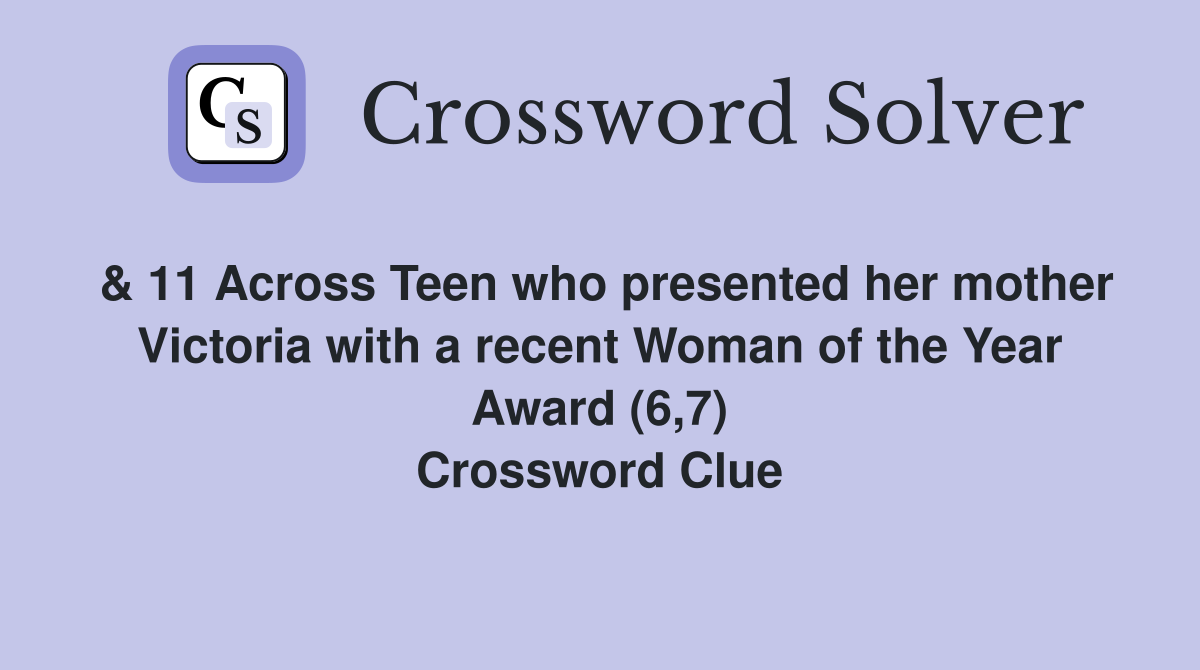 11 Across Teen who presented her mother Victoria with a recent Woman