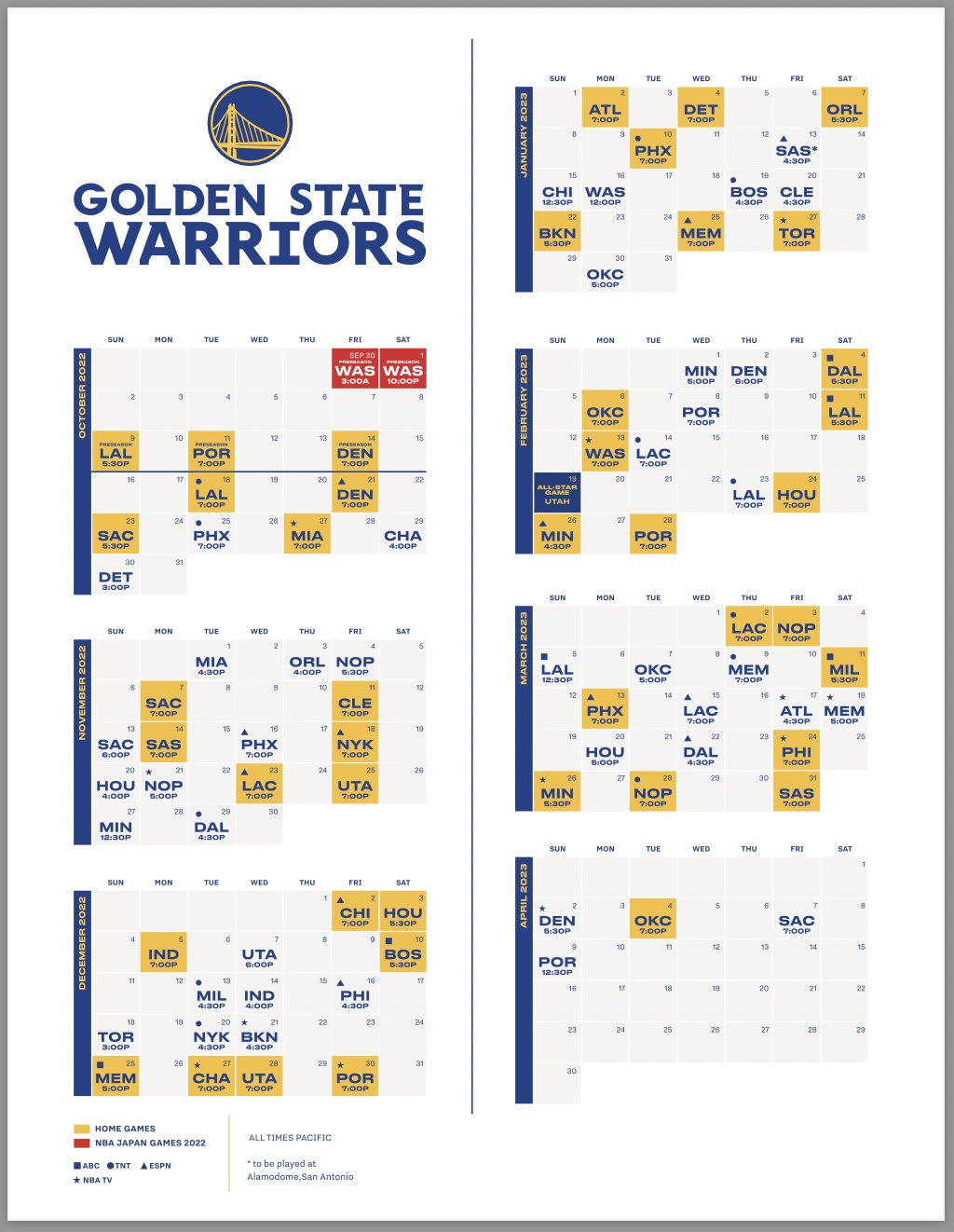 Printable 2020 21 Golden State Warriors schedule and TV schedule