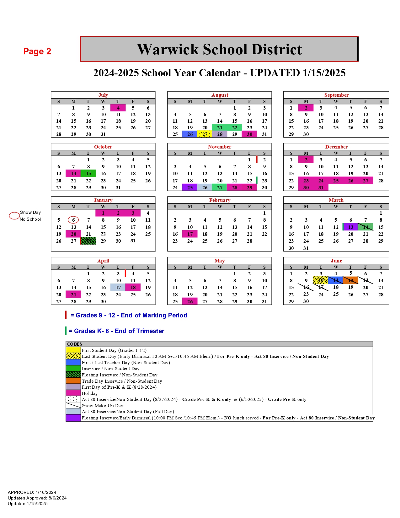Warwick School District Calendar 24 25 PDF revised EduCounty