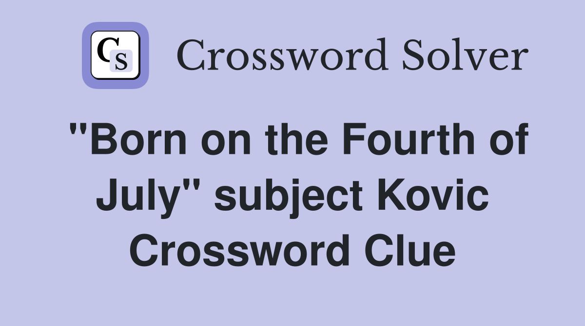 quot Born on the Fourth of July quot subject Kovic Crossword Clue Answers