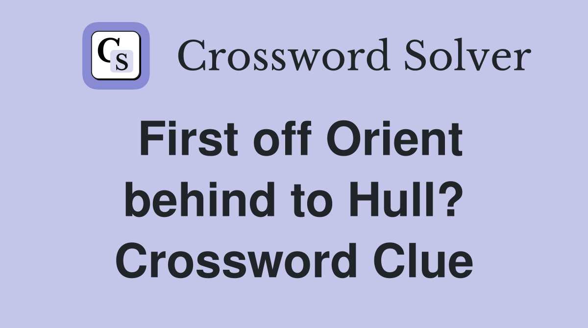 First off Orient behind to Hull? Crossword Clue Answers Crossword