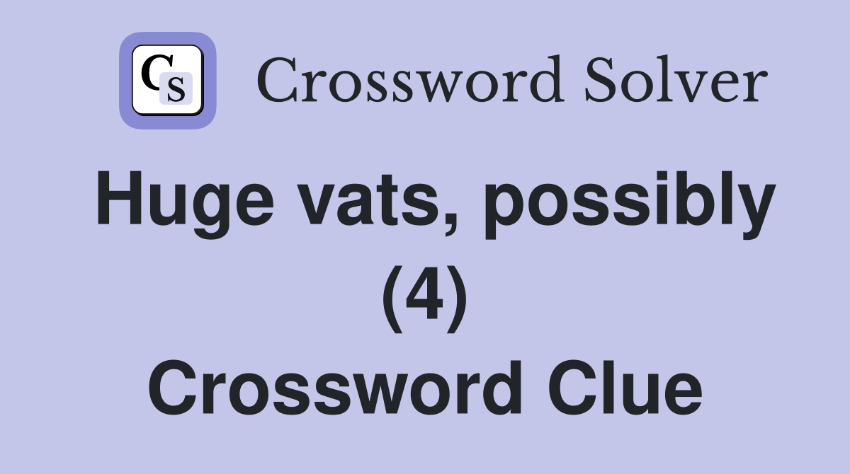 Huge vats possibly (4) Crossword Clue Answers Crossword Solver