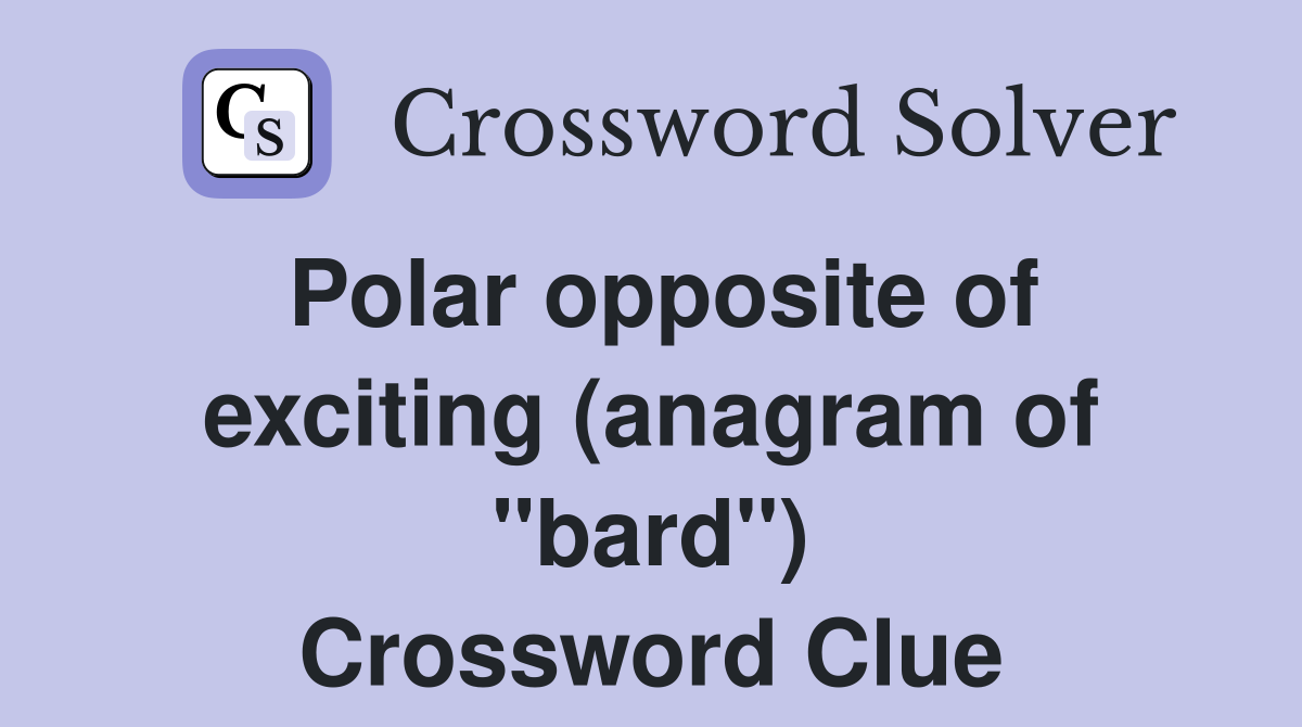 Polar opposite of exciting (anagram of quot bard quot ) Crossword Clue Answers