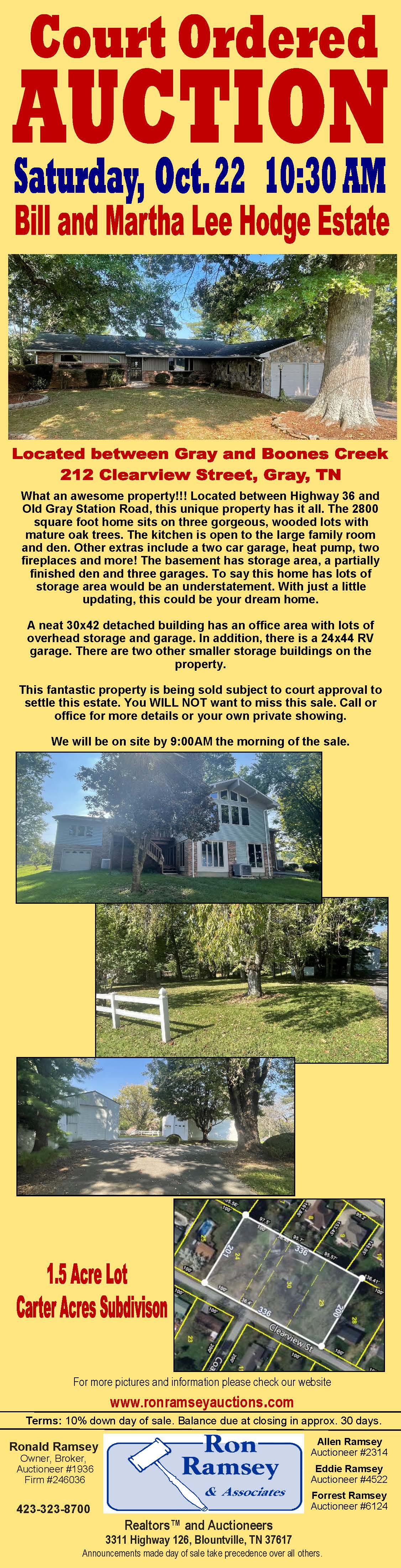 Property Auction October 22 2022 Clerk and Master sale Clerk