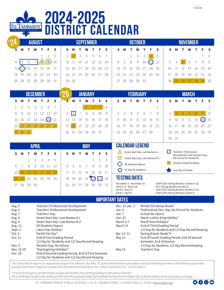 St Tammany Parish Schools Calendar 2025 2026 Download PDF