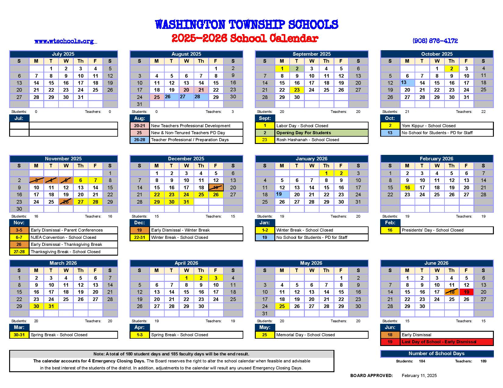Washington Township Public School Calendar 25 26 Revised PDF EduCounty
