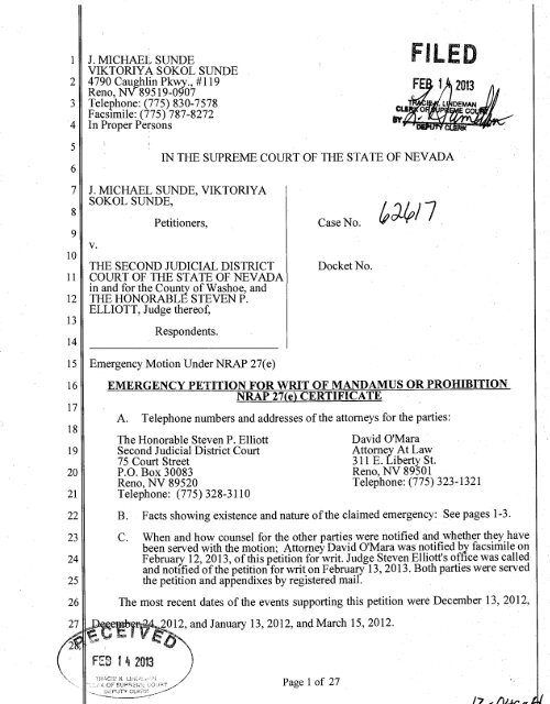 Nevada Supreme Court Writ Summary Robert D Crockett