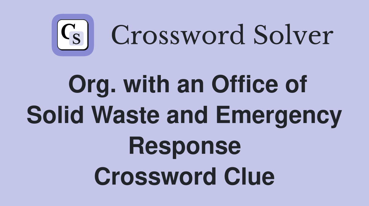Org with an Office of Solid Waste and Emergency Response Crossword