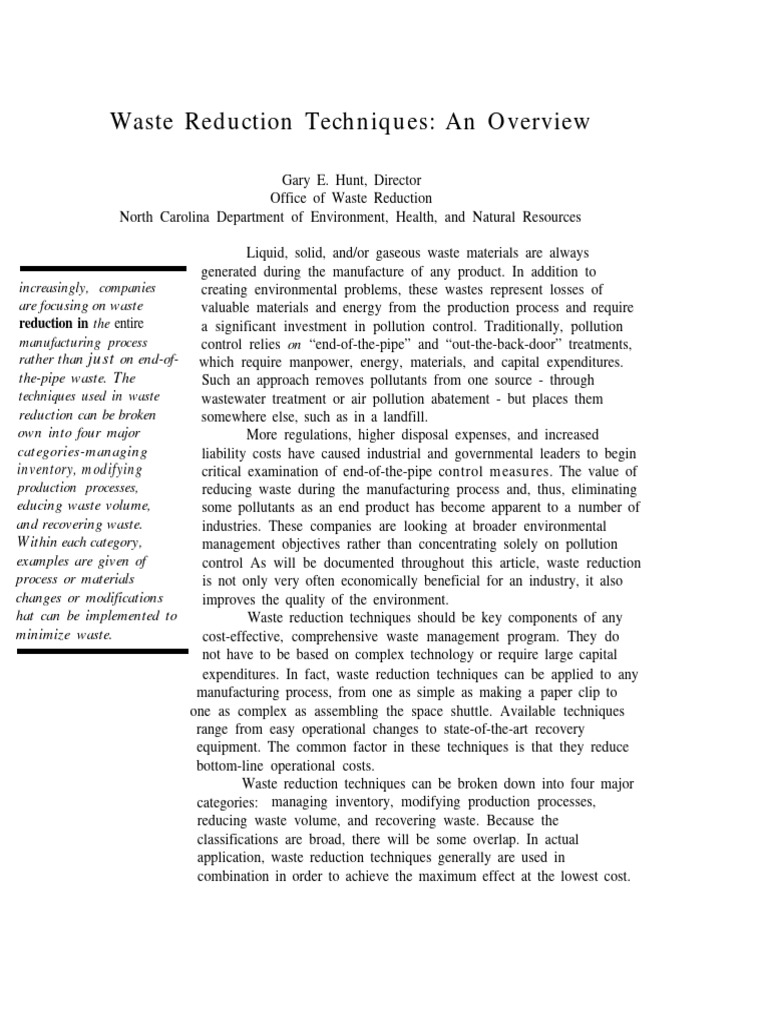 Waste Reduction Techniques An Overview PDF