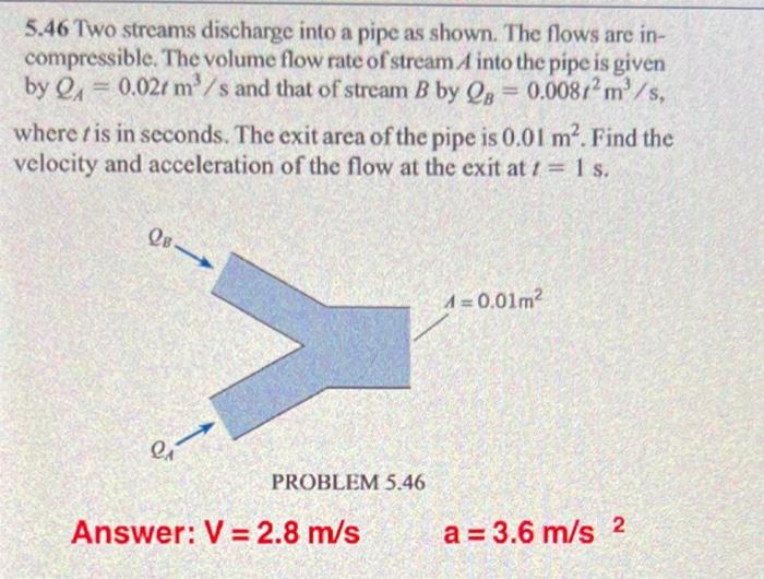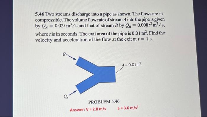 Solved 5 46 Two streams discharge into a pipe as shown The Chegg com