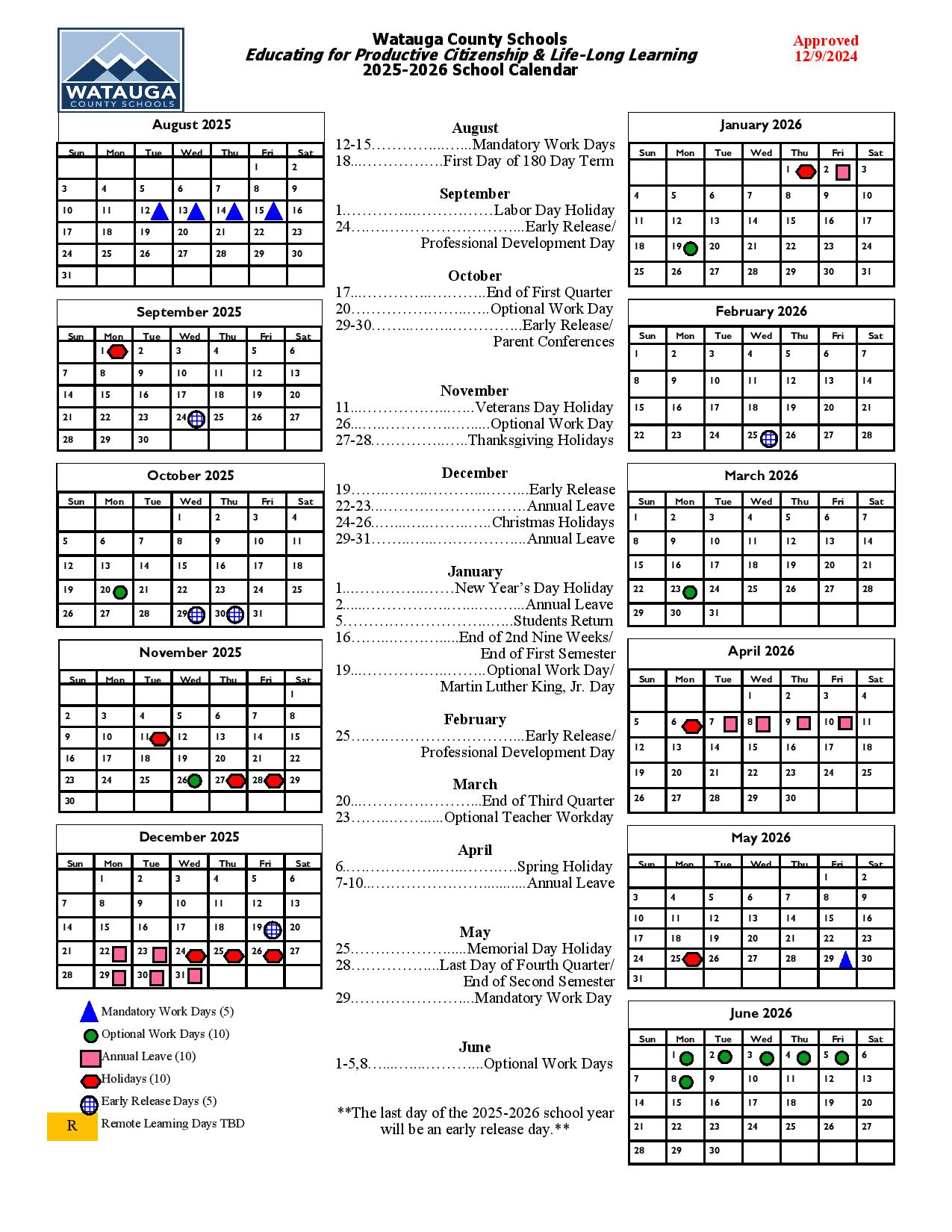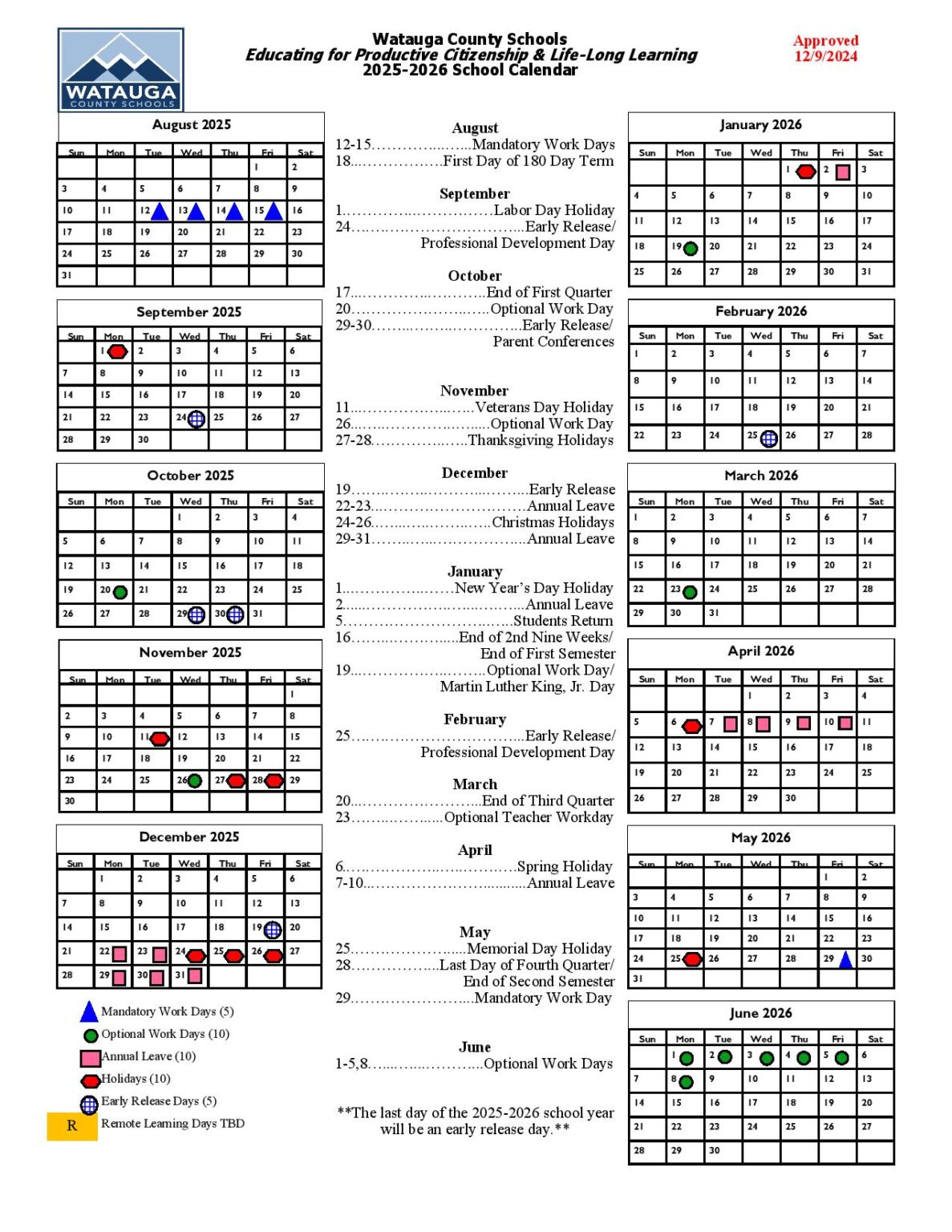 Watauga County NC Schools Calendar 24 25 PDF EduCounty