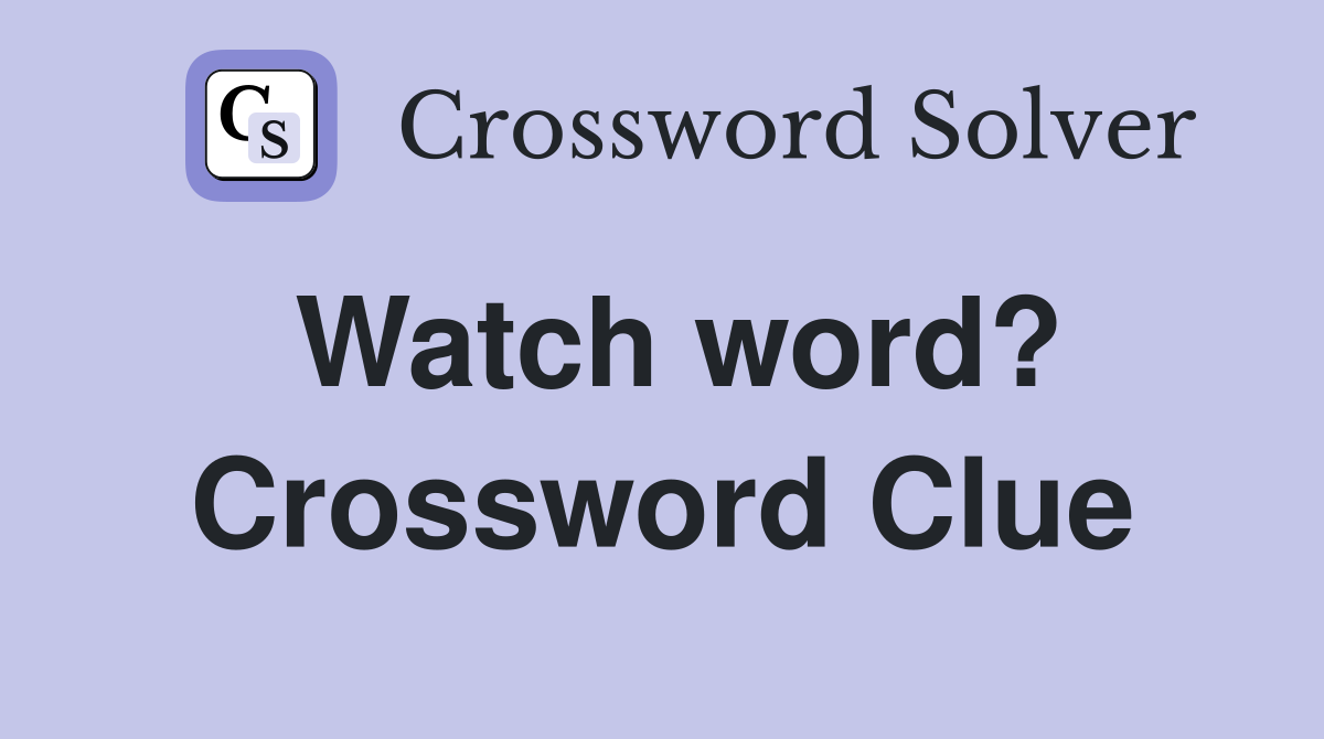 Here are some of the images for Watch Word Crossword Clue that we found in our website database.