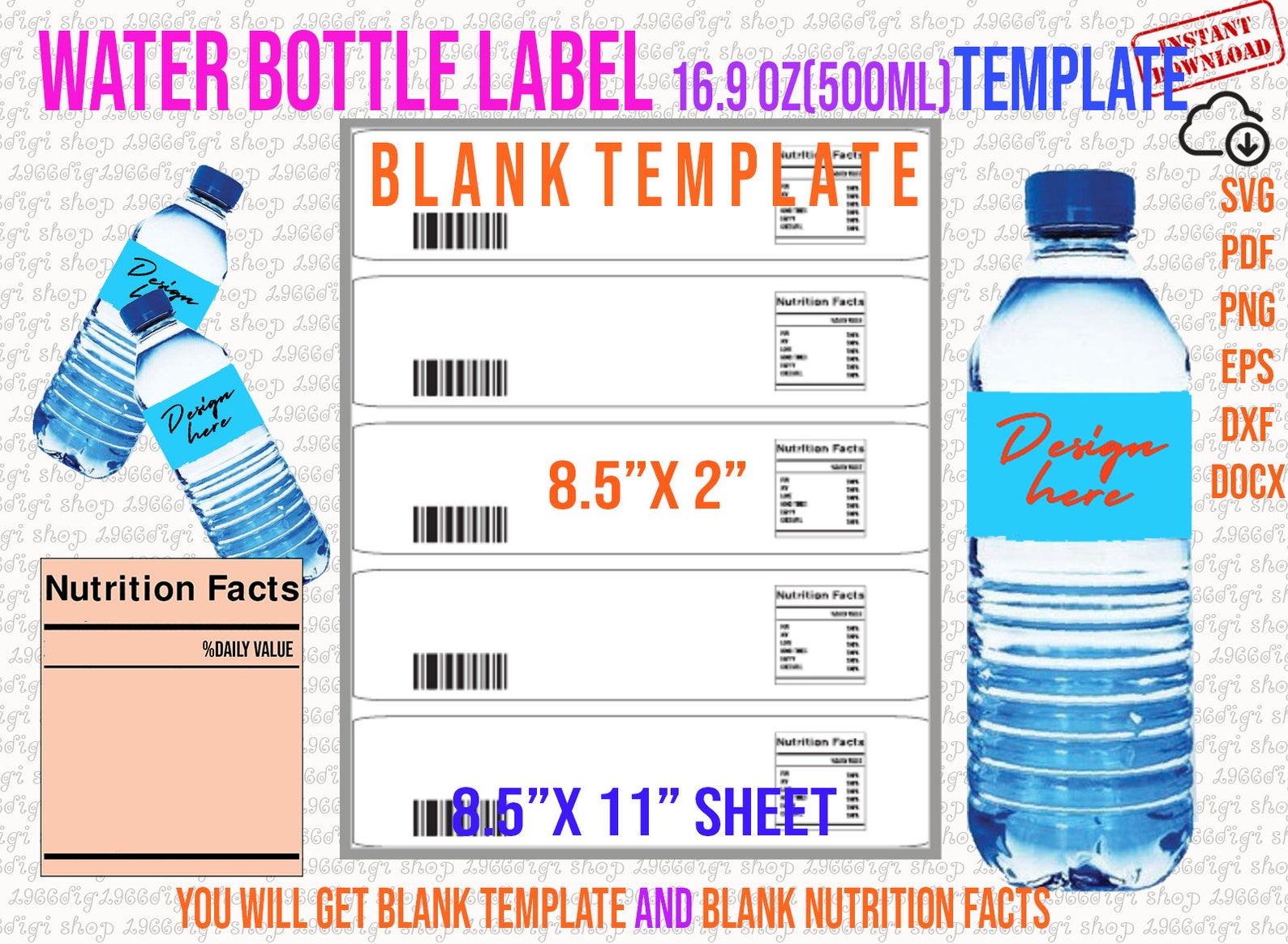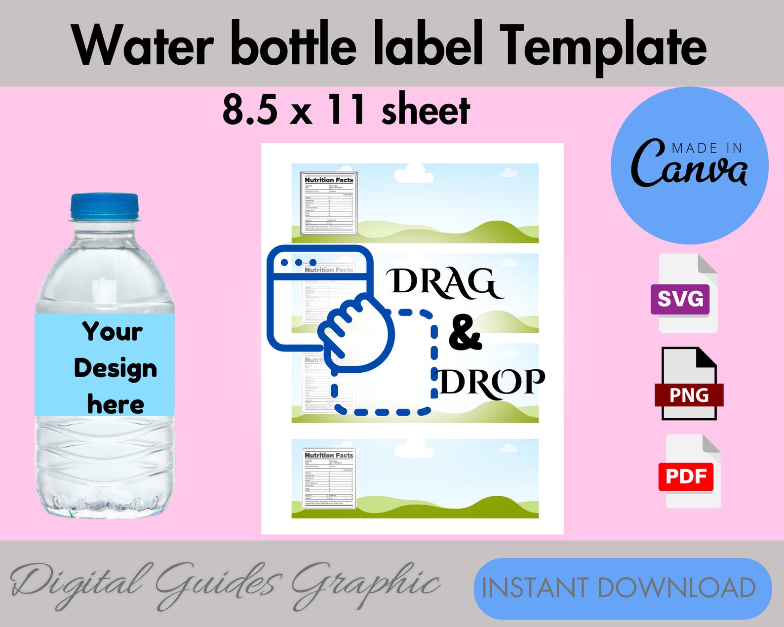Water Bottle Label Template 8 5x11 Sheet SVG PNG PSD and Docx Etsy