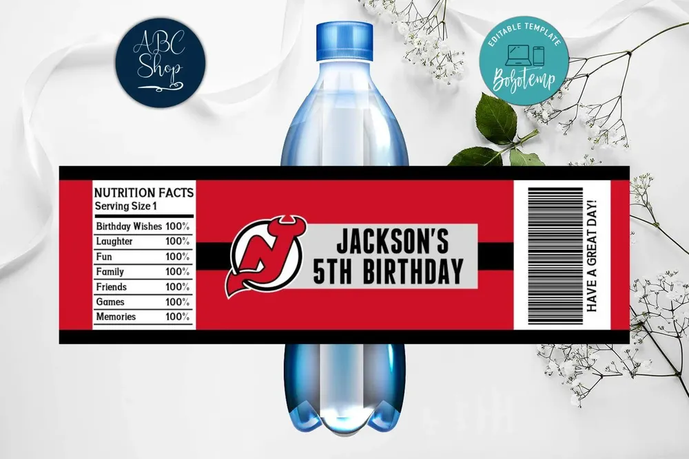 Printable New Jersey Devils Water Bottle Labels Instant Download Bobotemp