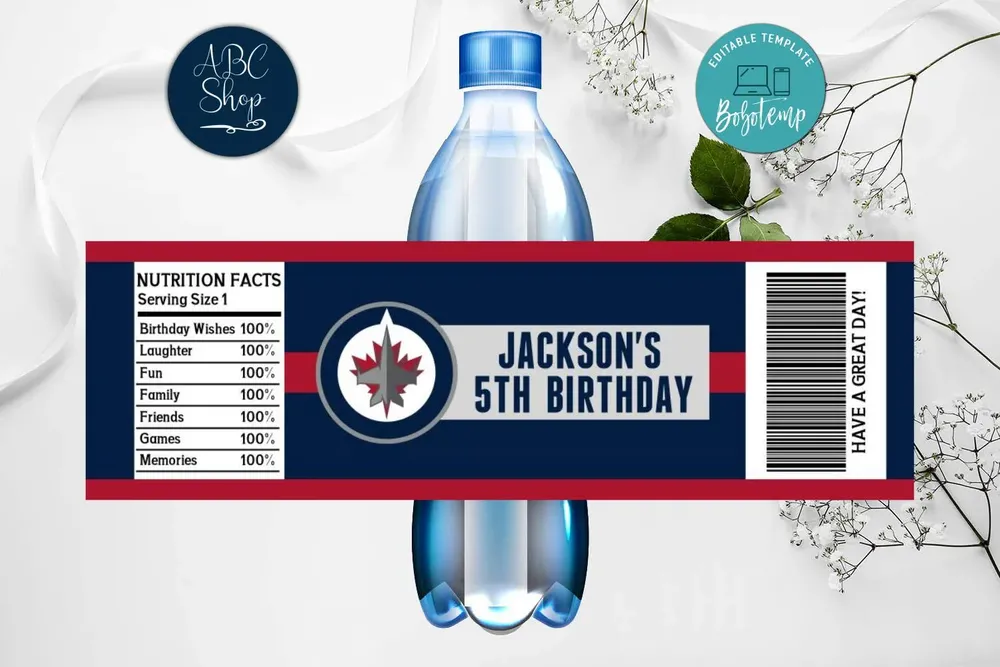 Printable Winnipeg Jets Water Bottle Labels Instant Download Bobotemp