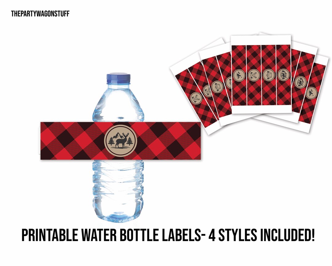Buffalo Plaid Water Bottle Labels Printable Flannel Drink Bottle Wraps