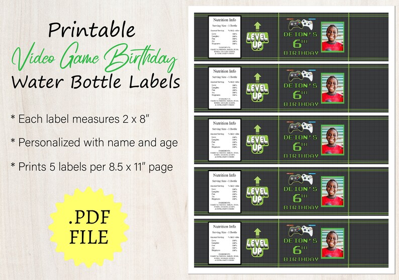 Video Game Birthday Water Bottle Labels Level up Gamer Etsy