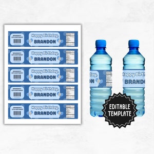 Birthday Water Bottle Label Template Editable Water Bottle Labels