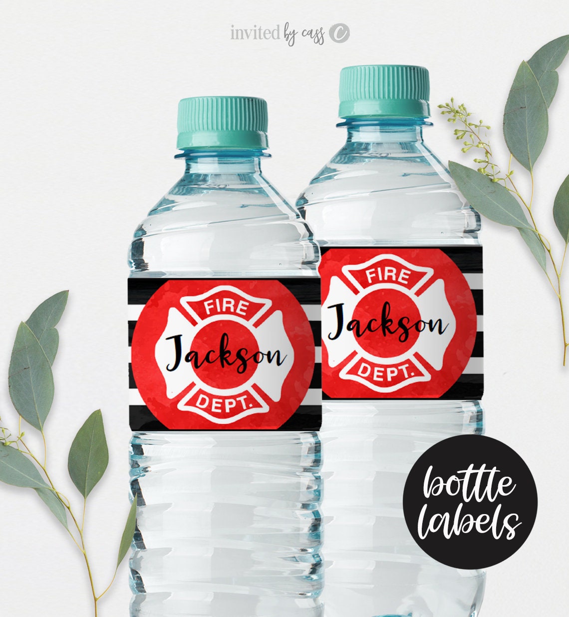 Fireman Party Water Bottle Labels template Water bottle labels