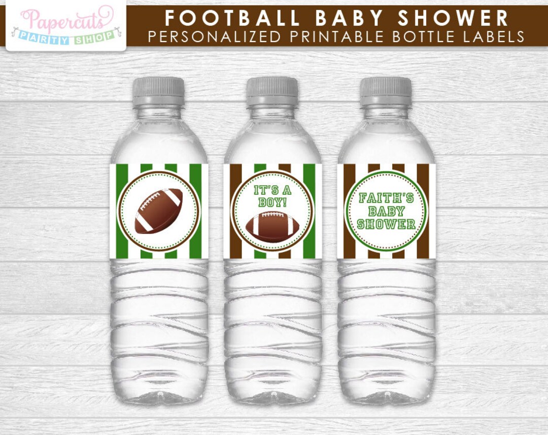 Football Theme Baby Shower Water Bottle Labels Green Brown