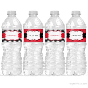 Birthday Water Bottle Label Template Red and Black Party Decorations