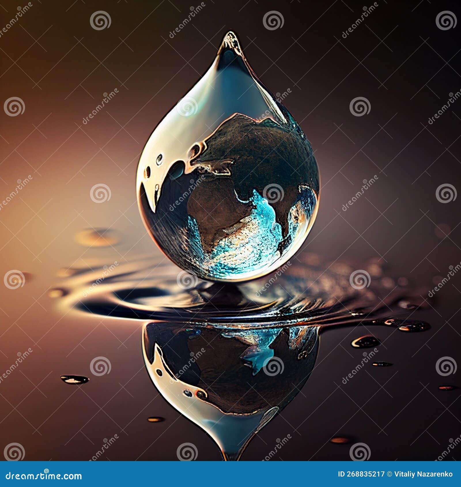 Earth in Water Drop Earth in Water Drop Drop of Water Stock