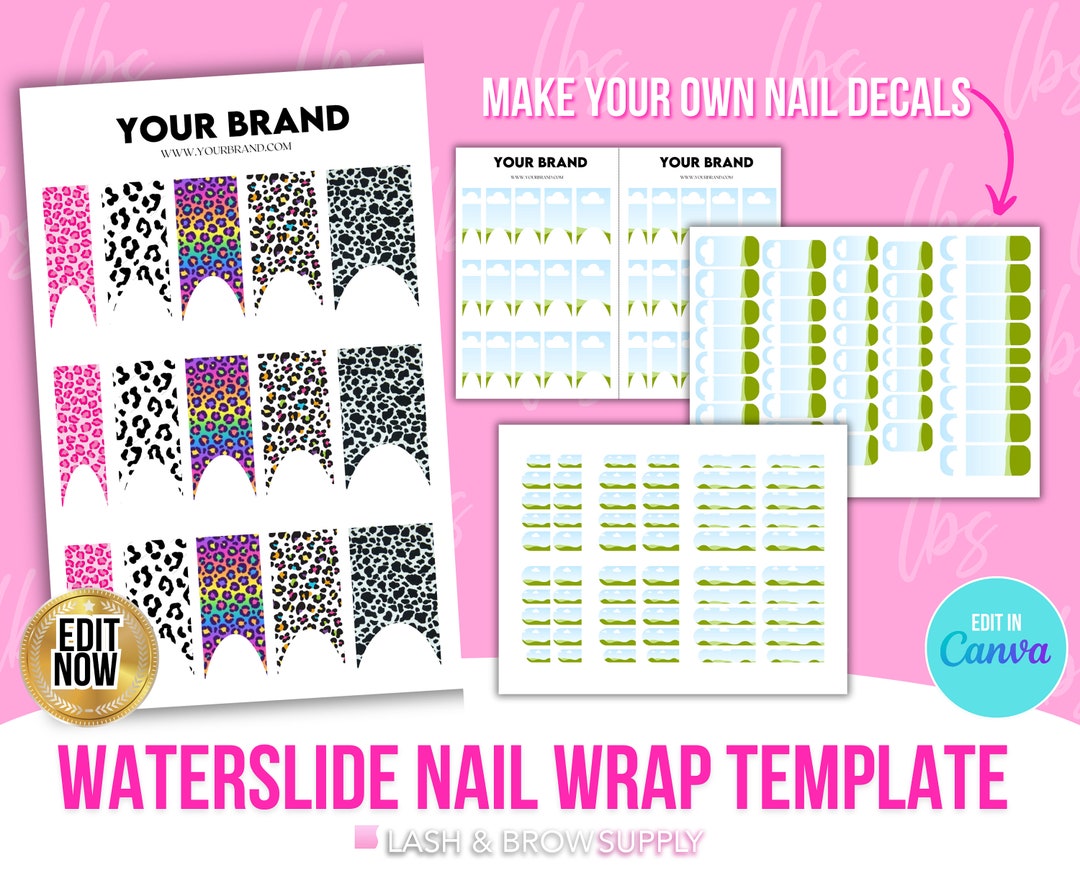 Editable CANVA Waterslide DIY Nail Decal Design Templates for Etsy