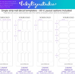 Nail Art Decal Template Instant Digital Download 4 Customizable