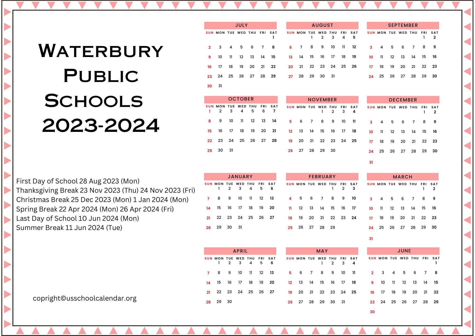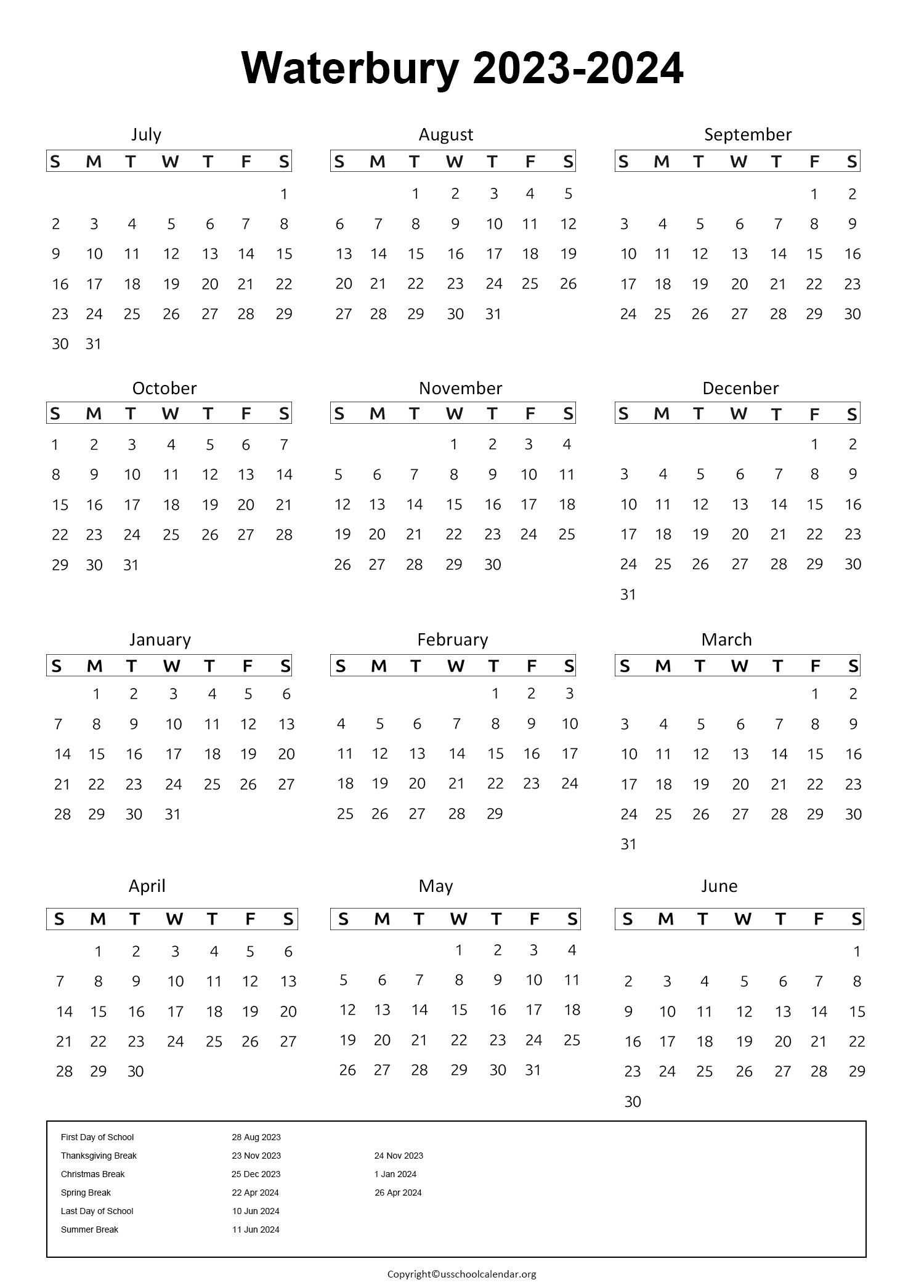 Waterbury Public Schools Calendar 2024 in PDF School Calendar Info
