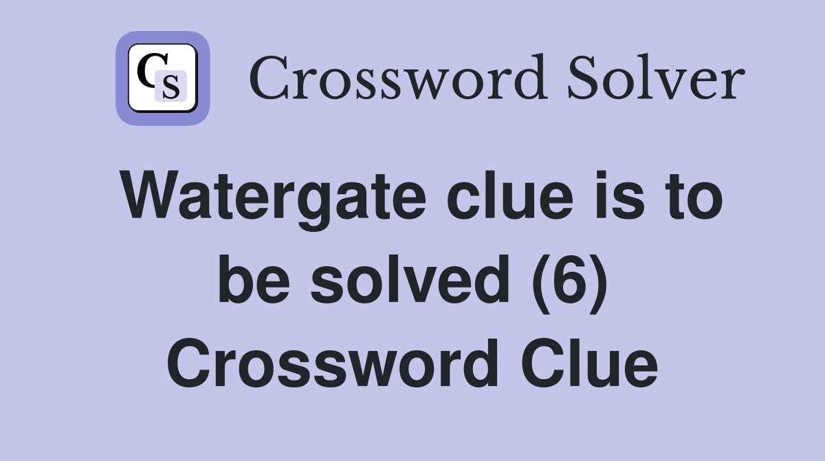 Watergate clue is to be solved (6) Crossword Clue Answers Crossword