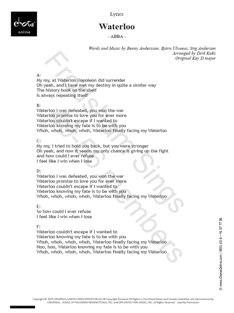 Waterloo Lyrics PDF