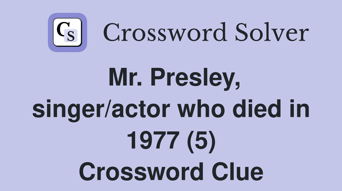 Mr Presley singer/actor who died in 1977 (5) Crossword Clue Answers