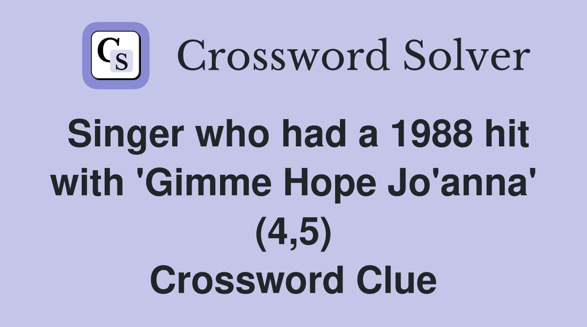 Singer who had a 1988 hit with Gimme Hope Jo anna (4 5) Crossword