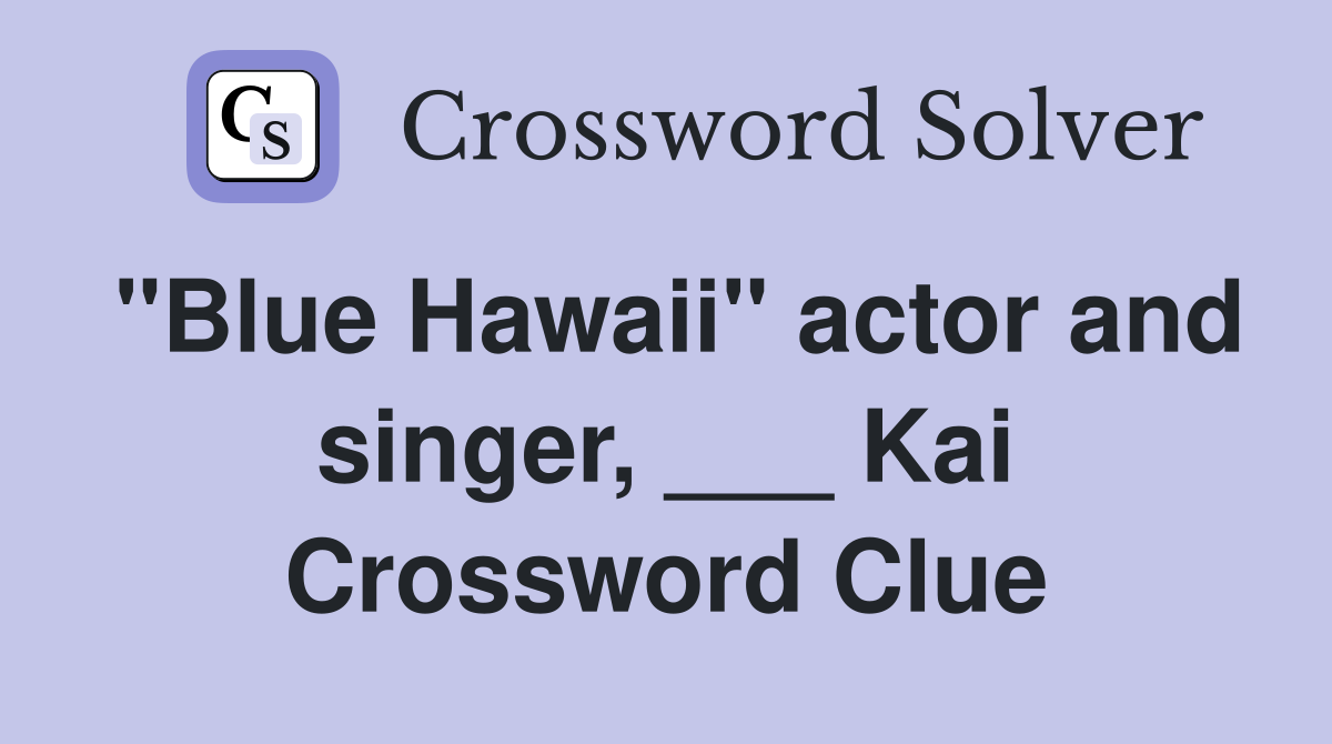 quot Blue Hawaii quot actor and singer Kai Crossword Clue Answers