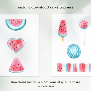 Watermelon Cake Topper Bundle One in a Melon Watercolor Printable