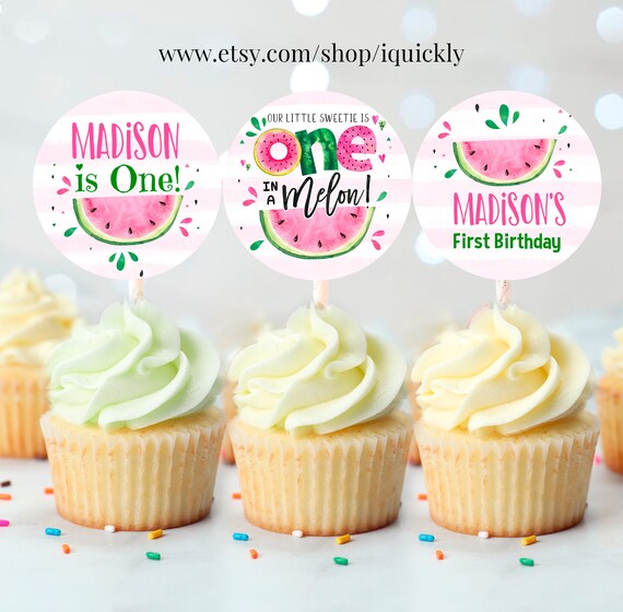 EDITABLE Watermelon Cupcake Toppers One in a Melon Circle Party
