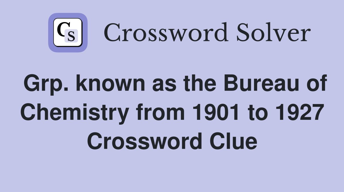 Grp known as the Bureau of Chemistry from 1901 to 1927 Crossword