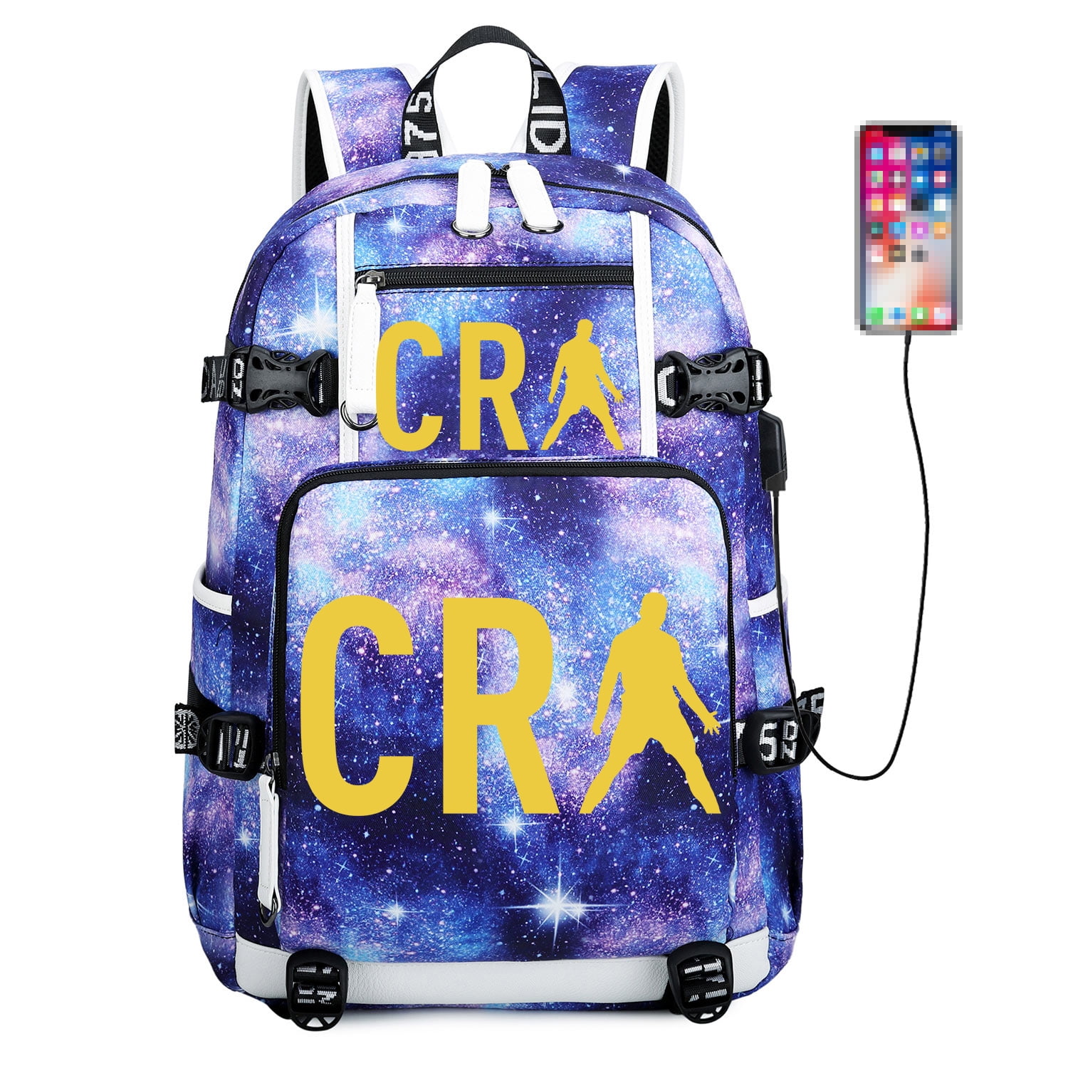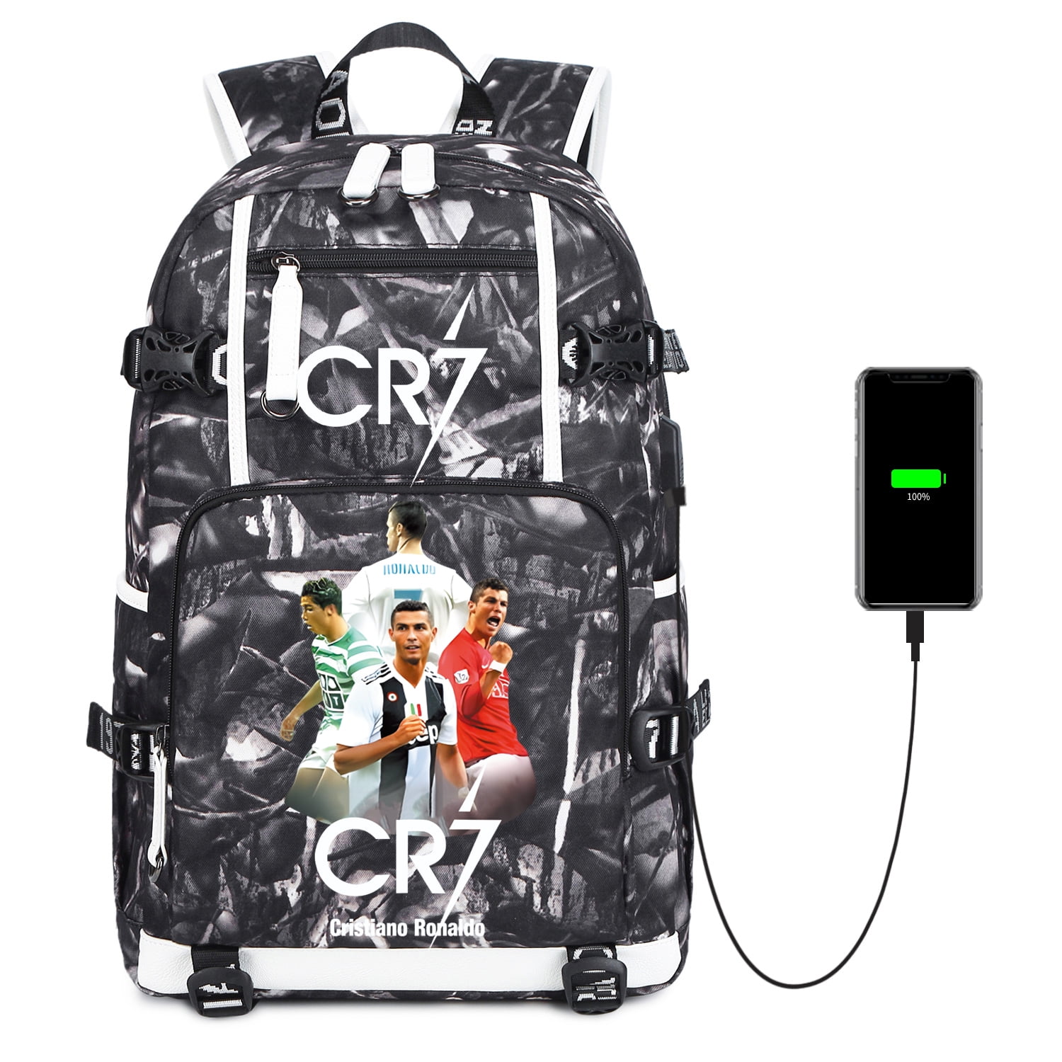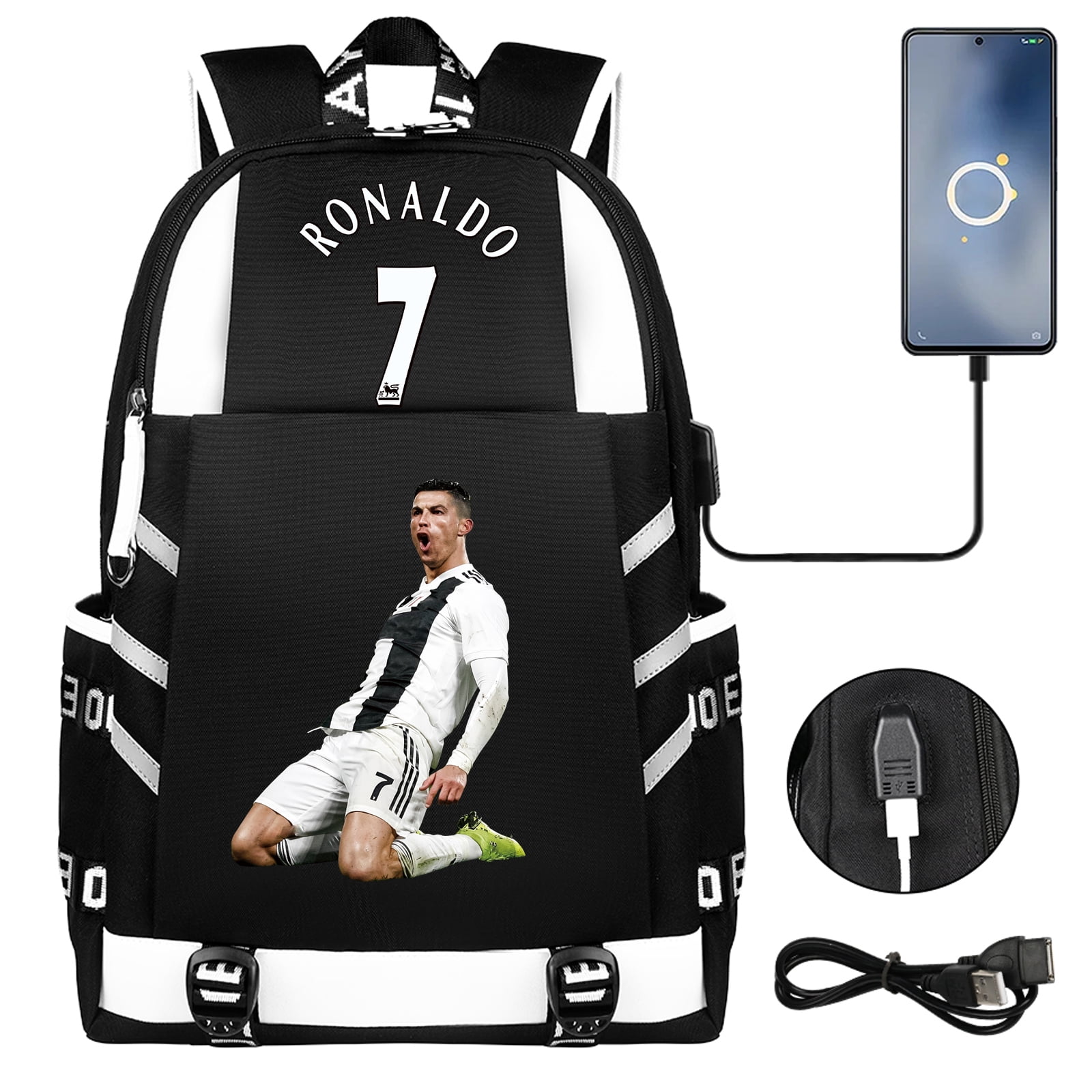 Backpack Cristiano Ronaldo printed waterproof laptop USB charges School