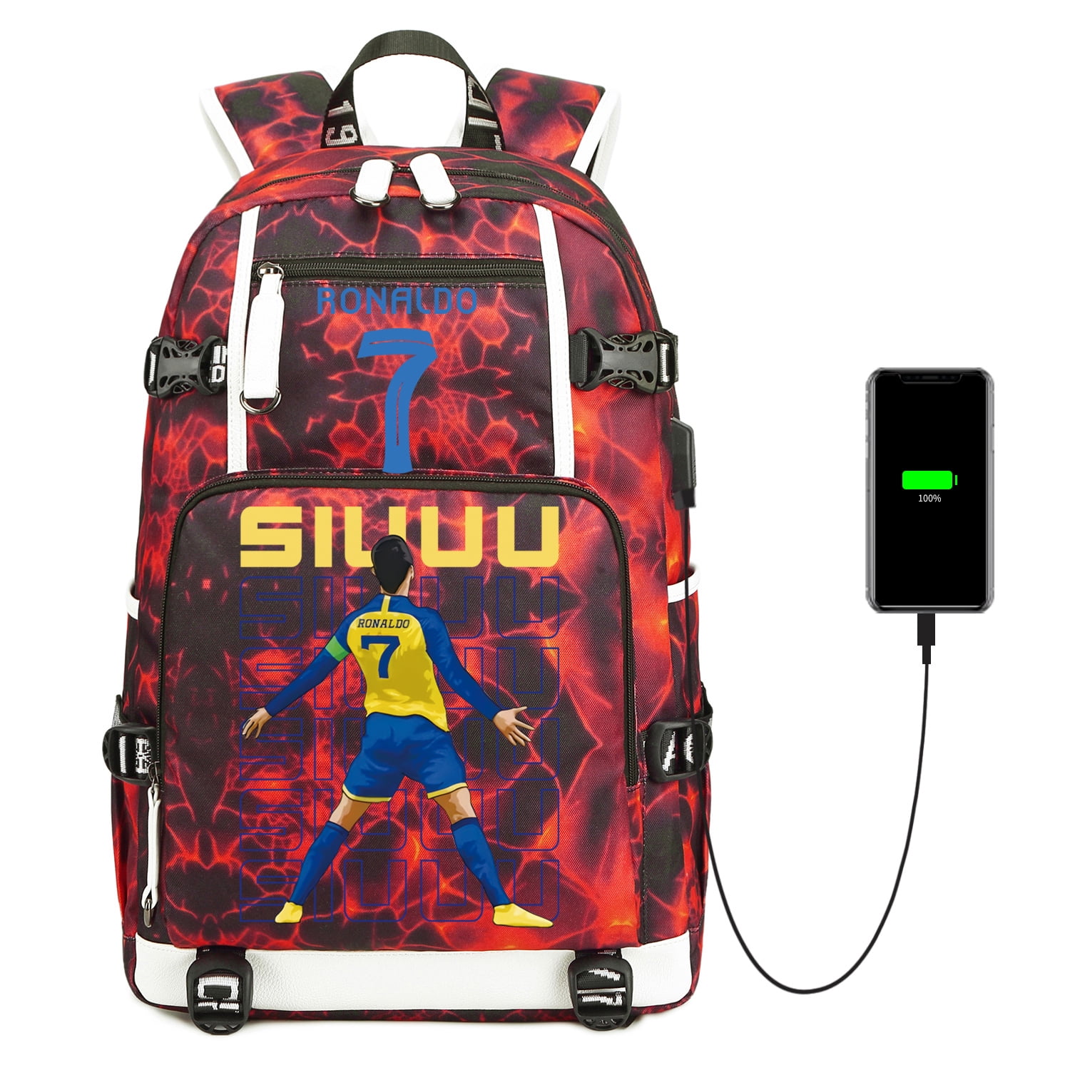 Cristiano Ronaldo Inspired Backpack Waterproof USB For School Camp