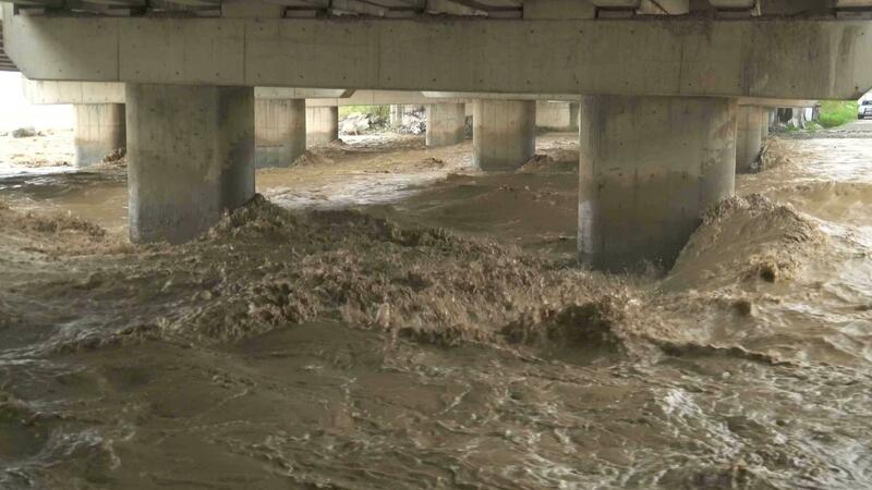 Flood waters between bridge columns 25517992 Stock Video at Vecteezy