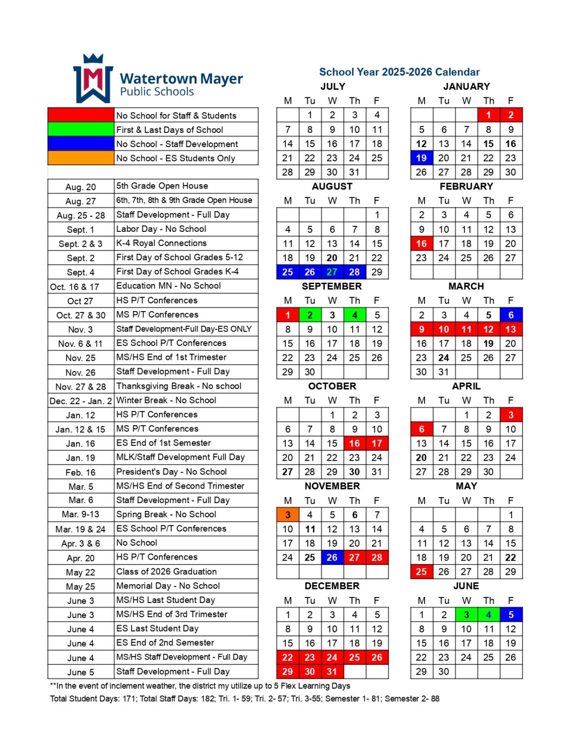 Watertown Mayer Public Schools mn Calendar 25 26 Revised pdf EduCounty