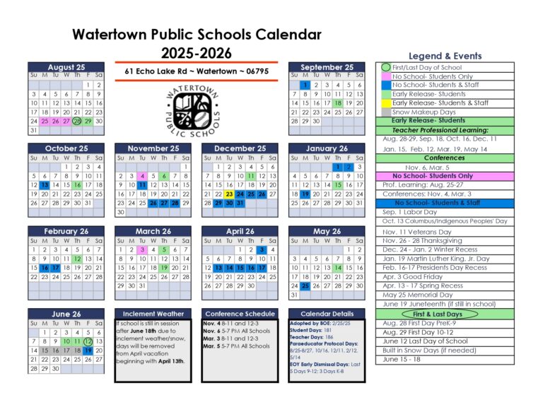Watertown Public Schools Calendar