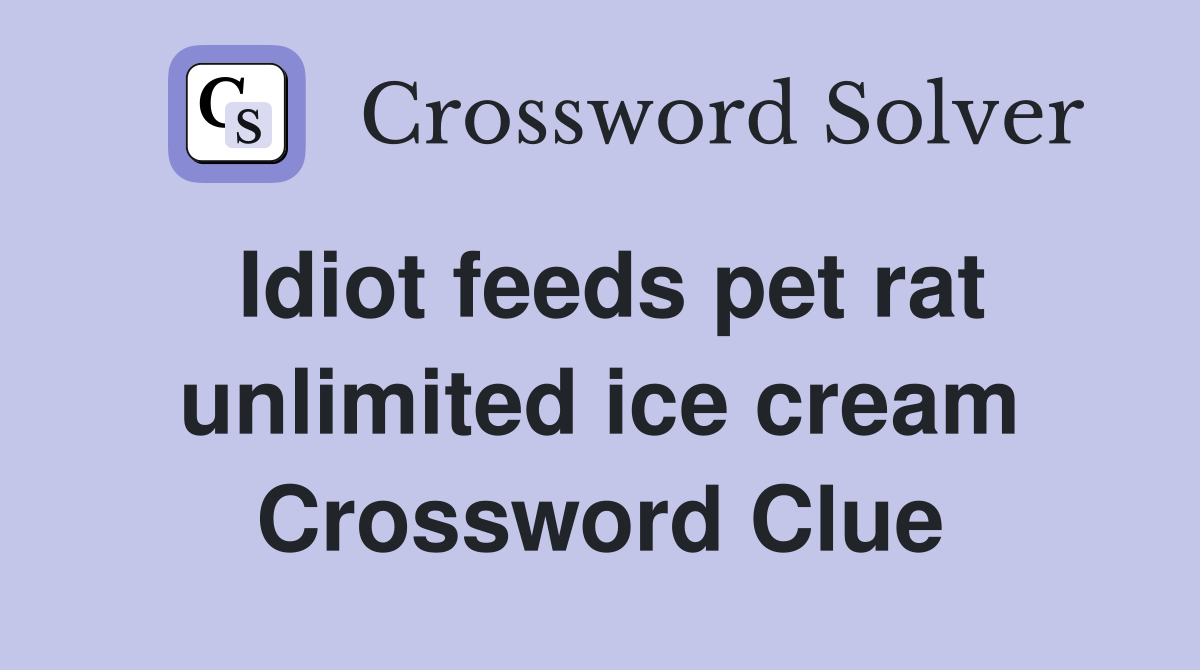 Idiot feeds pet rat unlimited ice cream Crossword Clue Answers