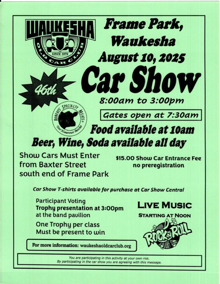Frame Park Car Show Waukesha 8/10/25 Wisconsin Motor Events