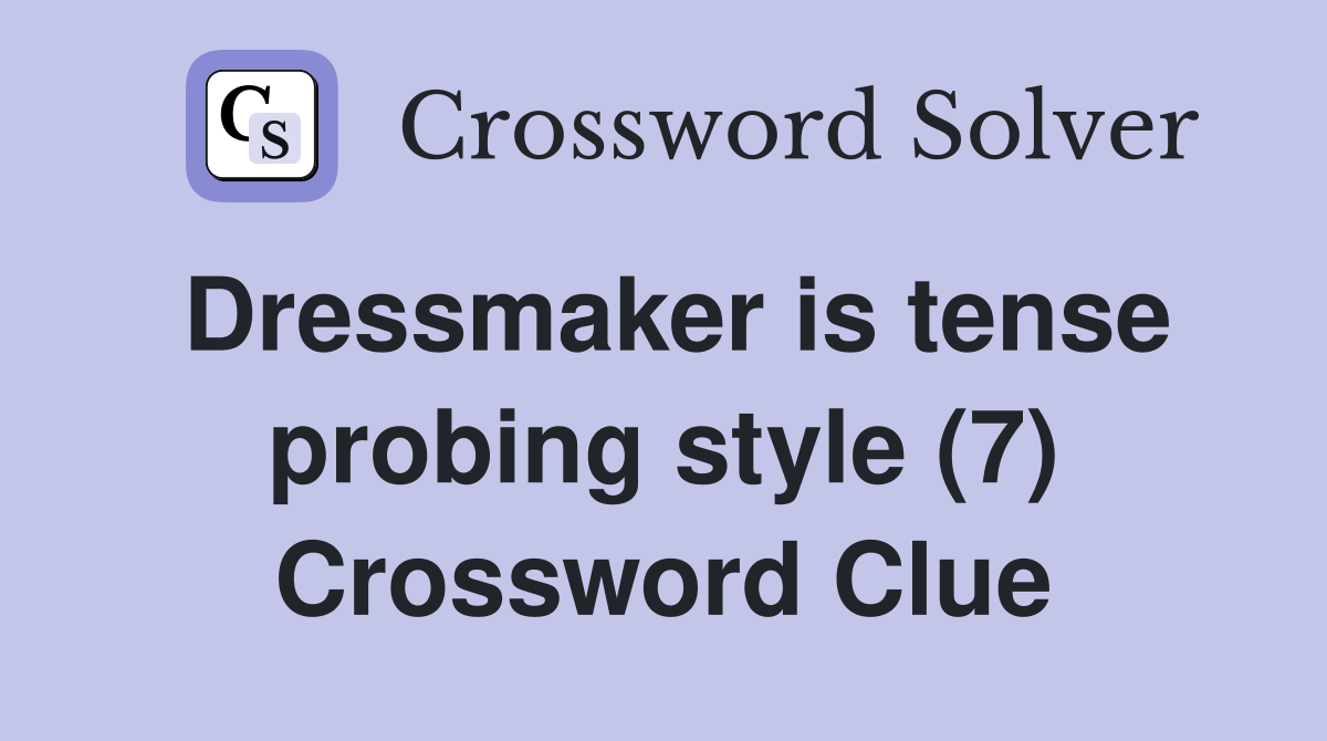 Dressmaker is tense probing style (7) Crossword Clue Answers