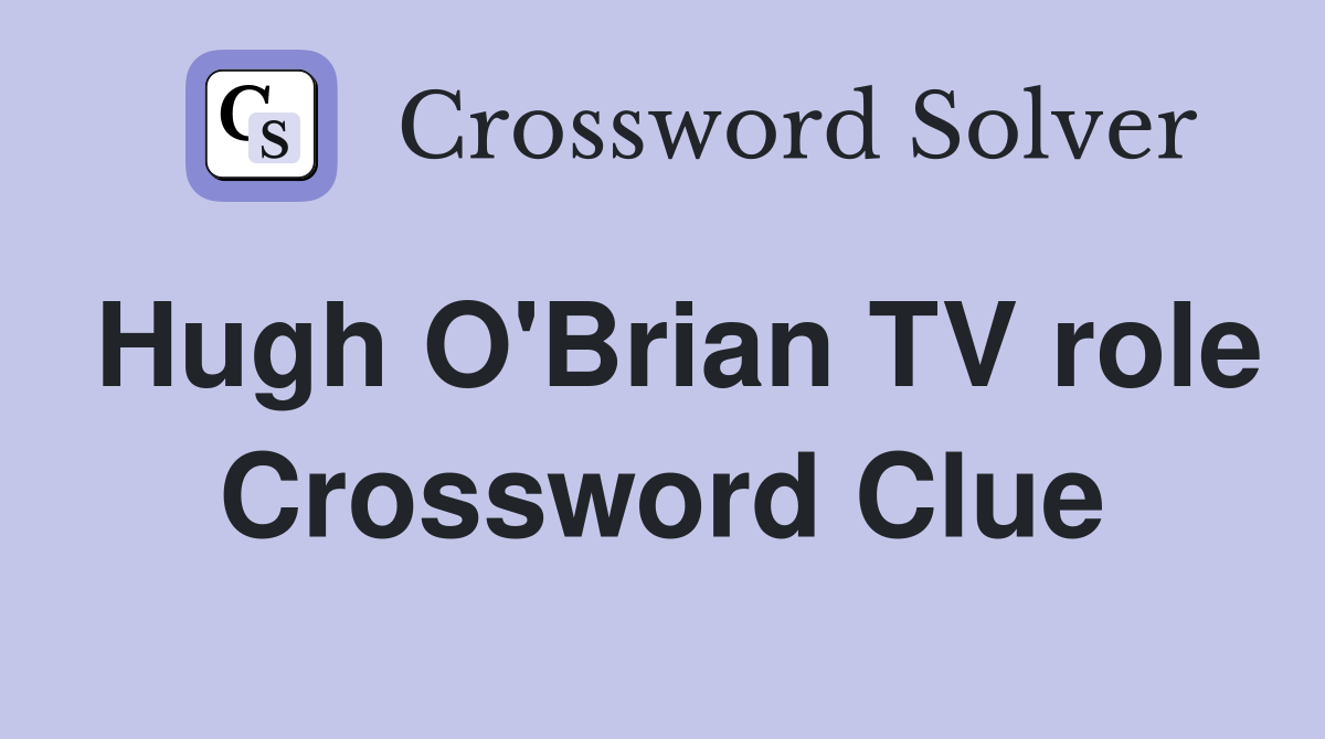 Hugh O #39 Brian TV role Crossword Clue Answers Crossword Solver