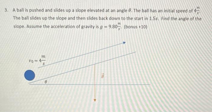 Solved 3 A ball is pushed and slides up a slope elevated at Chegg com
