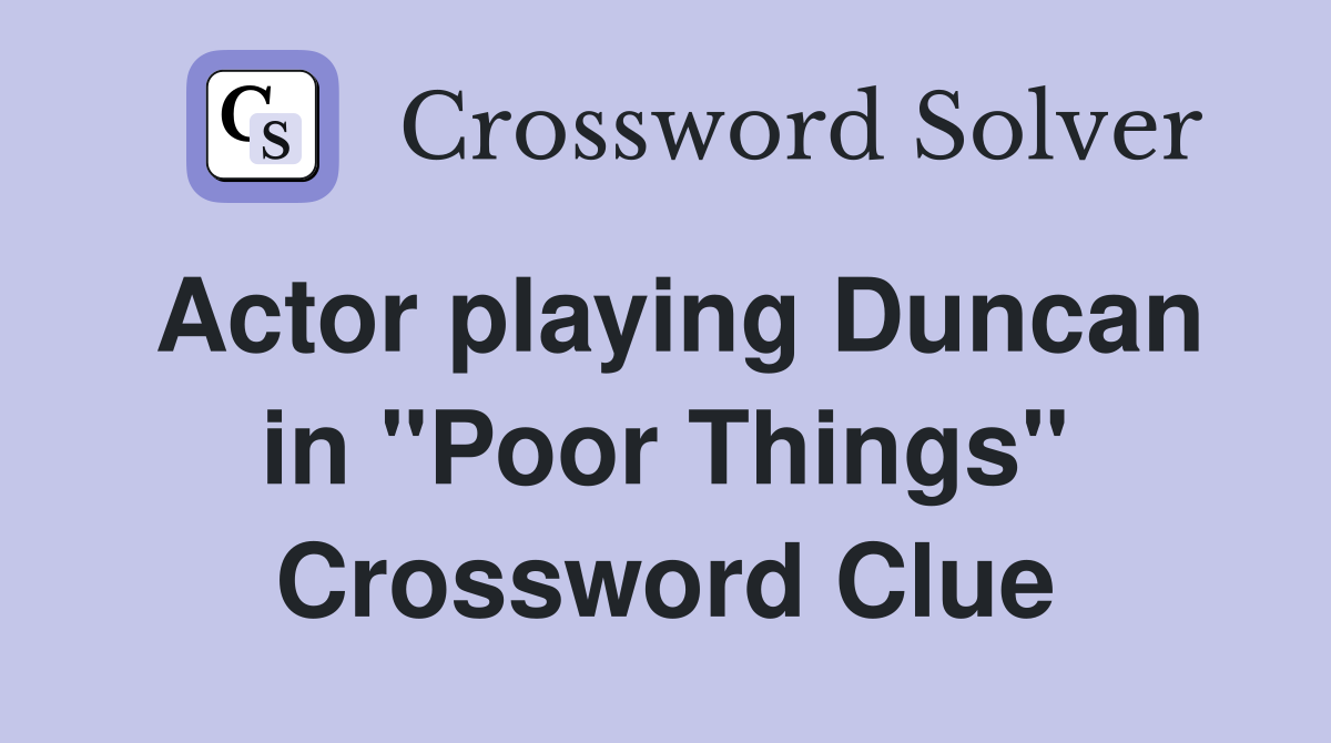 Actor playing Duncan in quot Poor Things quot Crossword Clue Answers
