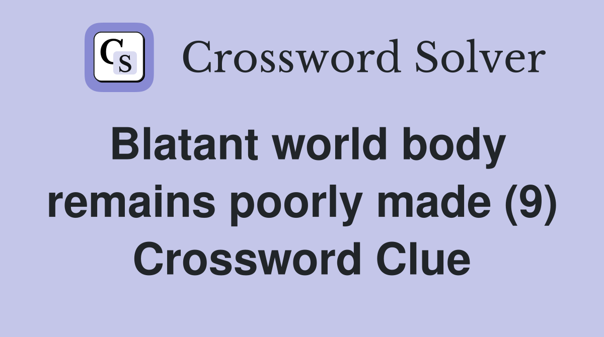 Blatant world body remains poorly made (9) Crossword Clue Answers