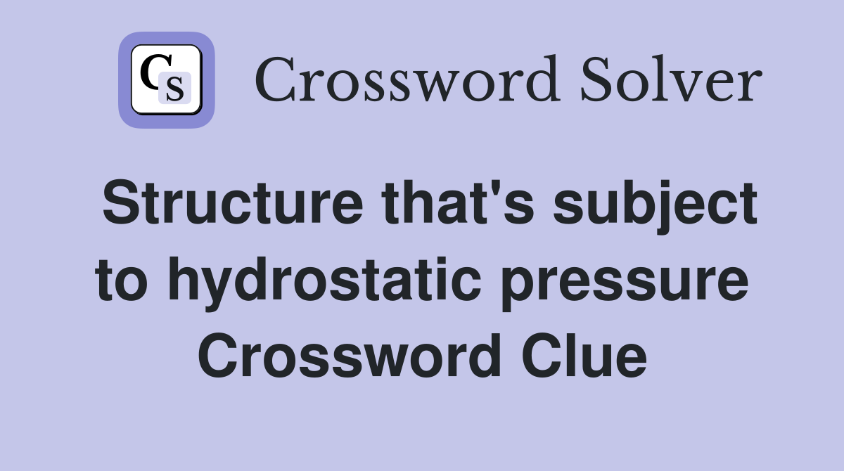 Structure that #39 s subject to hydrostatic pressure Crossword Clue